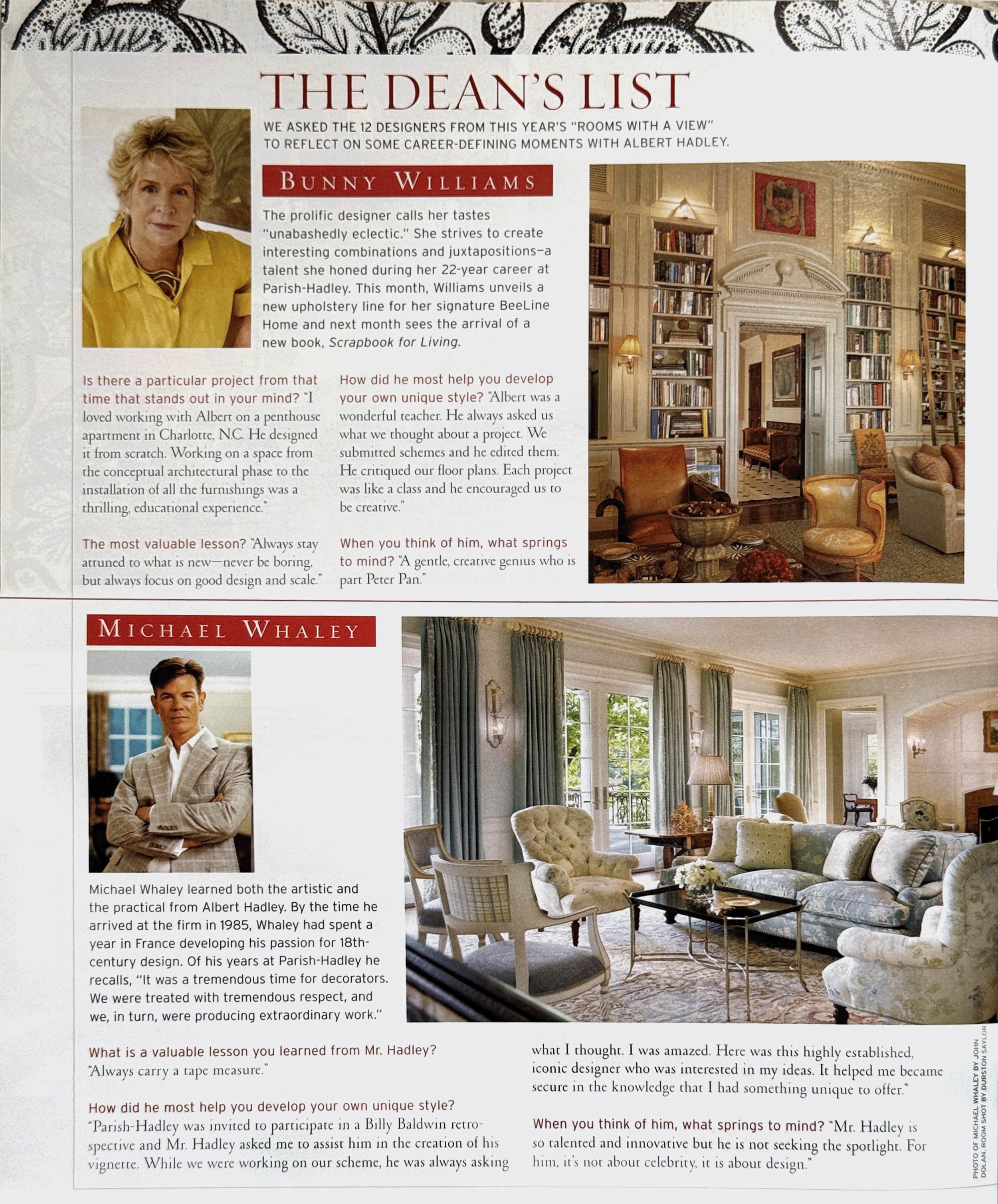 How did he most help you develop your own unique style? “Parish-Hadley was invited to participate in a Billy Baldwin retrospective and Mr. Hadley asked me to assist him in the creation of his vignette. While we were working on our scheme, he was always asking what I thought. I was amazed. Here was this highly established, iconic designer who was interested in my ideas. It helped me became secure in the knowledge that I had something unique to offer.”